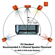 Gary, as well as one of the more vocal panelists, Frank Filipetti, promoted their strong opinions against ITU 5.1 ( see diagram to right courtesty of Best Buy ) and even went so far as to call it a bogus standard. Frank Filipetti also stated that "all ITU research was done using classical music, where surround speakers were used primarily for effects and ambience, and rear channels were not considered equal partners in the presentation".