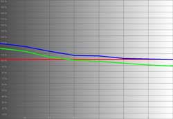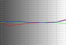Pure Cinema mode is represented most closely by the flat white line (though it wasn't that pristine when we began) and was the default setting we used as a starting point when calibrating the unit in a light-controlled environment. It is the only mode which runs the bulb at Eco (economy) mode which, in addition to gaining better black levels, garners the longest life expectancy for the bulb.