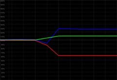 Pure Cinema mode is represented most closely by the flat white line (though it wasn't that pristine when we began) and was the default setting we used as a starting point when calibrating the unit in a light-controlled environment. It is the only mode which runs the bulb at Eco (economy) mode which, in addition to gaining better black levels, garners the longest life expectancy for the bulb.
