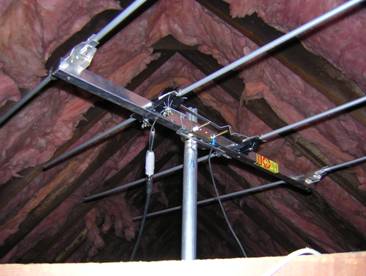 Now that I have completed the basic restoration and noise reduction of the T-80 tuner it’s time to start on setting up a decent antenna. An outdoor rotating antenna would be the optimum choice here, but my present living circumstances are not going to allow that. I am not a DX guy as my major goal is to get decent reception from the many Boston area radio stations. A friend of mine who had come to visit recommended using the attic, which has enough space to put in a 4 element Yagi. I presently live about 15 miles up the coast from Boston so mounting a small Yagi from Winegard (Pro 6000), http://www.winegard.com/offair/pdf/pr-6000.pdf seemed like an acceptable alternative to the standard FM dipole. I spent a few evenings on antenna placement and found the following. Just about anywhere in the attic with antenna pointed toward Boston gave me about the same results. Even with an extra 37 feet of RG 6 added I found no real difference monitoring the signal quality meter and the multipath meter. I got the RG6 I am using at Home Depot. I also did a search through the Belden Master Catalog and found that RG6 typically has an insertion loss of 2.5db for every 100 ft. at 100 MHz. I am presently using about 32 ft. so that gives me just under 1db of loss from the antenna. The only spot where I had problems was near the chimney. The antenna itself was very inexpensive. The cost from Lashen Electronics in New Jersey was about 47.00, which included the mast and Balun to convert the 300 ohm antenna to 75 ohms. The antenna is extremely light so body building is not required for placement. The shipping cost came to about 35.00 due to UPS claiming it was an oversize package. UPS also managed to nearly destroy the cardboard packaging but the antenna itself was not damaged.