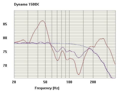 After testing out PBK under normal circumstances, I wanted to see what would happen if the system was used improperly. I wanted to know if it could be broken. I tried taking a series of measurements at various problem spots in the room (corners + back wall + center of room). I took all of the measurements in the exact same location, so see if it would over correct. Much to my delight, I could not force PBK to make any major mistakes. The graph below is the result of sticking the microphone right in a corner in the room and taking 5 measurements without moving the mic. Sure enough, it made a huge improvement in the frequency response. It didn’t get rid of a node around 23Hz, but I’m not surprised. Adding a few extra dB that low would cause undue strain on the Dynamo 1500X’s amplifier, which, during our review, we found was already heavily equalized to allow the sub to reach down to 20Hz.