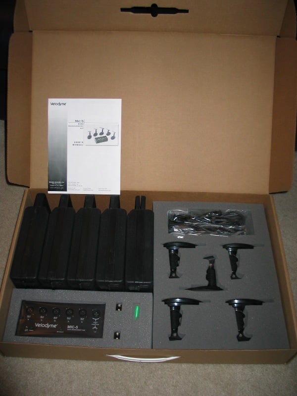 The proprietary Velodyne subwoofer correction system is included in all the higher end Velodyne subs as well as a standalone unit called the SMS-1. Anyone that has done much research about subwoofers has undoubtedly run across the SMS-1. A 1/3 octave smoothed, on-screen graph in real time makes adjusting and parametric eq’ing a subwoofer an exercise even the most technologically challenged can excel at. While some argue that the smoothing of the graph can hide some real problem areas, the fact remains that the SMS-1 is one of the only products available at ANY price point that is this user friendly. Just about all other solutions require multiple measurements by hand or a college degree of some sort. Most cost significantly more than the SMS-1. But the SMS-1 has one major drawback – no way of taking multiple measurements in order to get a more representative response across a large area. No longer. The Mic-5 add-on allows the user to take into account multiple simultaneous measurement positions (up to five, obviously) and adjust their SMS-1 to get the smoothest bass response over a greater number of seating positions by averaging the measured response envelop.