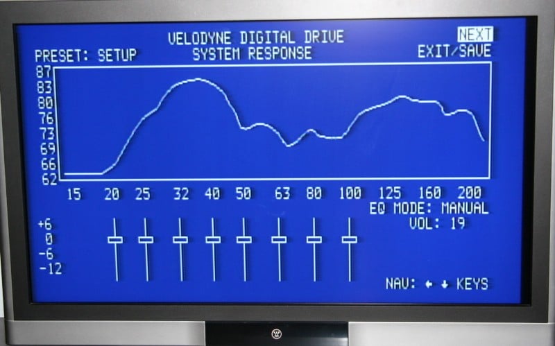 One issue that I had was that the onscreen graph didn’t adjust for increased volume. Because my room is small and my sub is so big, too much volume on the sub would push the graph past its upper limits. Too little volume and the sub wouldn’t engage. I ended up having to adjust the volume on my Denon AVR-3805 until it was high enough for the sub to engage on all frequencies but not so loud that it overshot the top of the graph. I’d like to see an auto scaling feature which would automatically adjust the graph for higher SPLs.