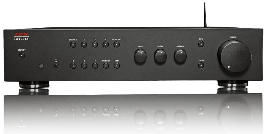 The Adcom lineup also includes the 70-watt GFA-6002 ($449), the 250-watt GFA-565se ($1,899), and the 450-watt GFA-585se ($3,799). All of the new amps are reportedly bridgeable into powerful monoblocks. The GFA-555se, GFA-565se, and GFA-585se feature balanced inputs; the matching GFP-915 stereo preamplifier ($999) has balanced outputs in addition to unbalanced RCA. The preamp also offers optical and USB digital inputs, and bluetooth connectivity. The GFP-915 offers five line-level analog inputs, plus both moving-magnet and moving-coil phono inputs.