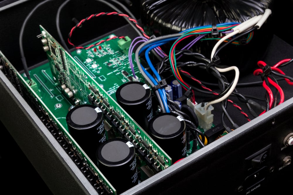Most pricey audiophile amps use class-AB amplification. That works well, but it isn’t very efficient, and those amps tend to need heavier-duty hardware to accomplish the same effect. Class-D is far more efficient, especially at lower levels, and doesn’t need 50 lbs of components with massive heatsinks and a large chassis. Audiophiles have traditionally eschewed class-D amps because of less refined examples in the pro-audio realm and also theoretical advantages of keeping fidelity intact in signal reconstruction. Cherry seeks to keep the major advantages of class-D amps but eliminate its traditional disadvantages for extreme high-fidelity sound reproduction. Let’s now take a close look at the MEGAschino amplifier to see how far they have come to attaining their goal...