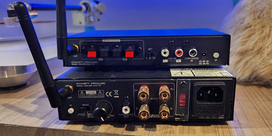 The Dynasty ProAudio WSA-5RP-Plus is designed to be used power remote speakers wirelessly either connected for 2CH applications in a guest room or college dorm or to connect to an AV receiver to power surround speakers when running speaker cables to those speakers from the other side of the room just isn’t feasible.