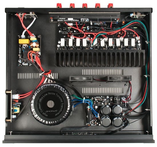 Of course, with lower cost and smaller boxes comes smaller power supplies and less power. Luckily, this is Emotiva we are talking about so the downsides have been minimized. The UPA-500 sports 80 watts per channel, all channels driven into 8 ohms while the UPA-200 has 125 watts into both channels at 8 ohms. Both have high quality components including toroidal transformers and precision film capacitors. While the power supplies look identical from the pictures, we can't confirm that. The UPA-200 has a 350 VA high current ultra-low noise toroidal power transformer and they both sport 40,000 uF of storage capacitance. Of course, the amps feature fully discrete, dual differential, high current, short signal path Class A/B typologies and are rated stable into 4 ohms.