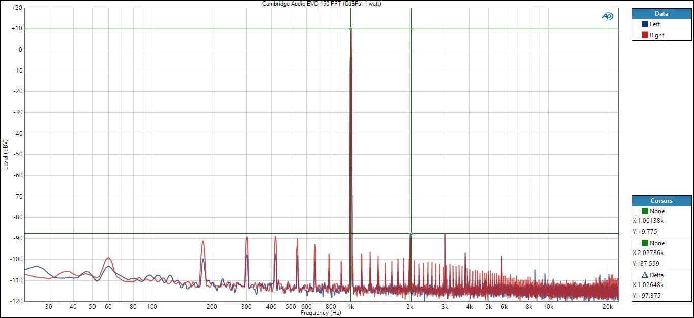 Cambridge Audio EVO 150 1 kHz FFT @ 2.83Vrms (1 watt, 8 ohms)