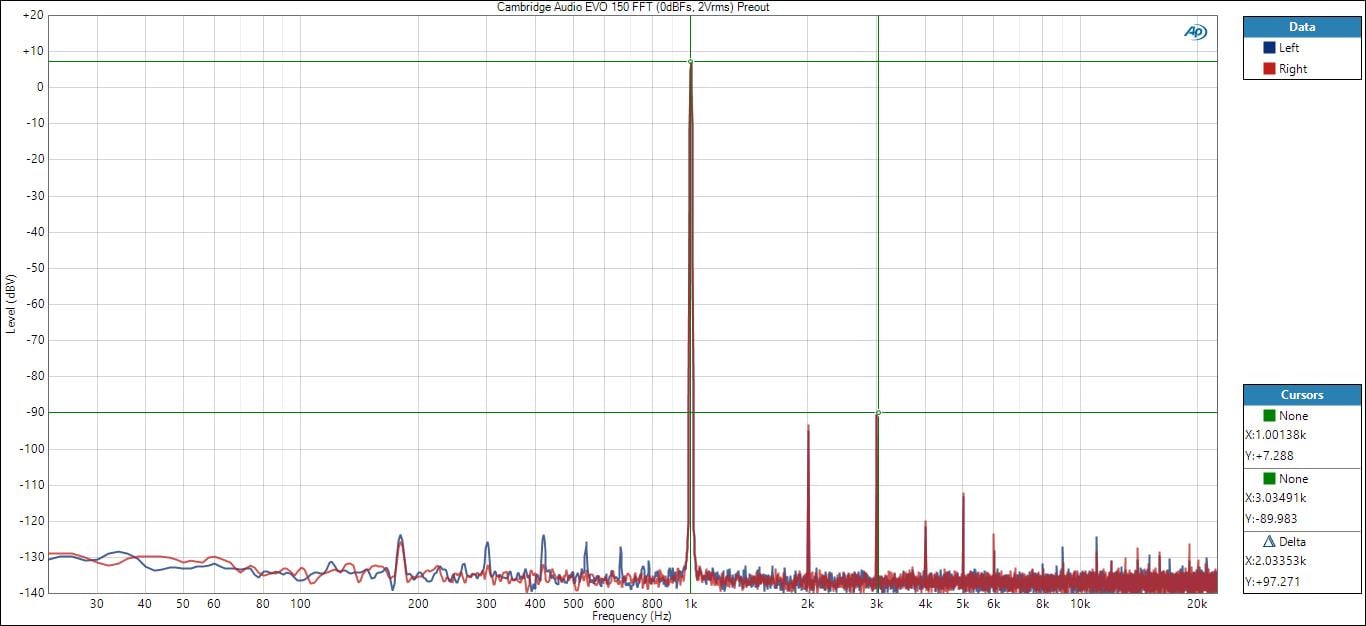 Cambridge Audio EVO 150 1 kHz FFT @ 2Vrms Preout
