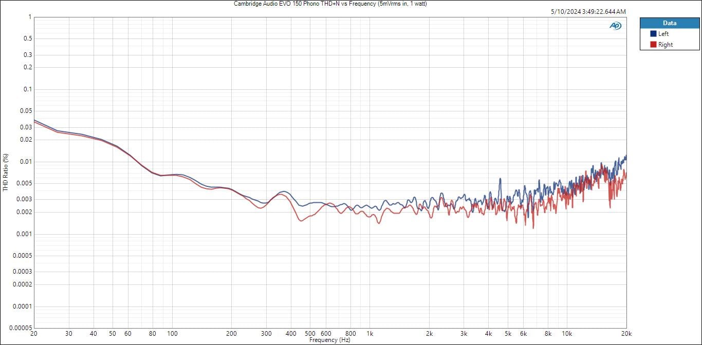 Cambridge Audio EVO 150 Phono Distortion vs Frequency Response (5mVrms input)