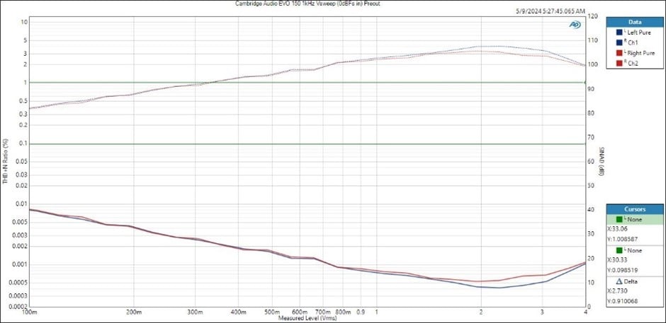 Cambridge Audio EVO 150 Preout Output Voltage vs Distortion
