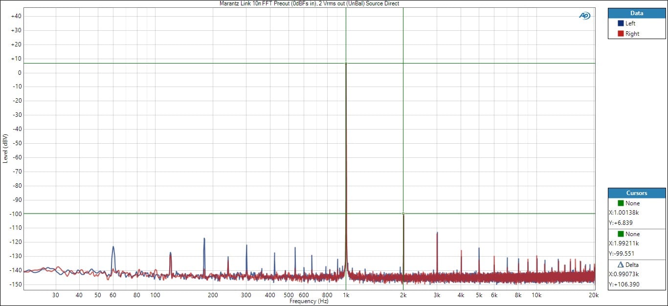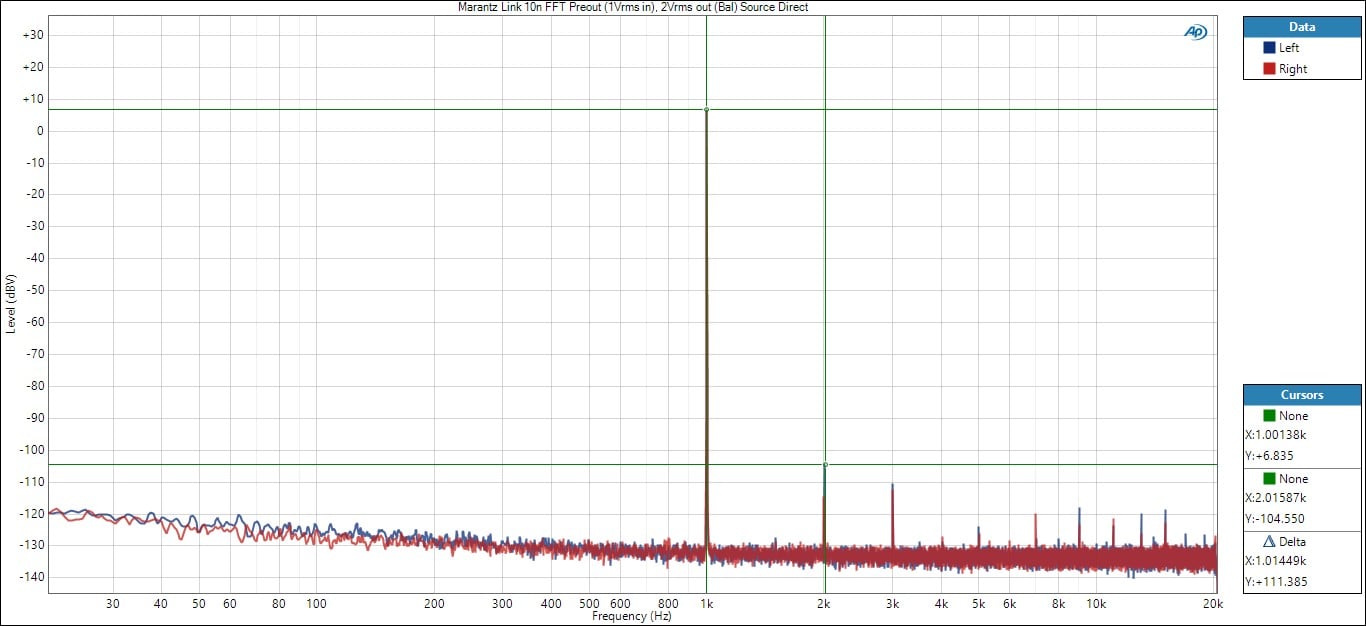 Marantz Link 10n Preamp Analog FFT Distortion Analysis @ 2Vrms Unbal Outputs