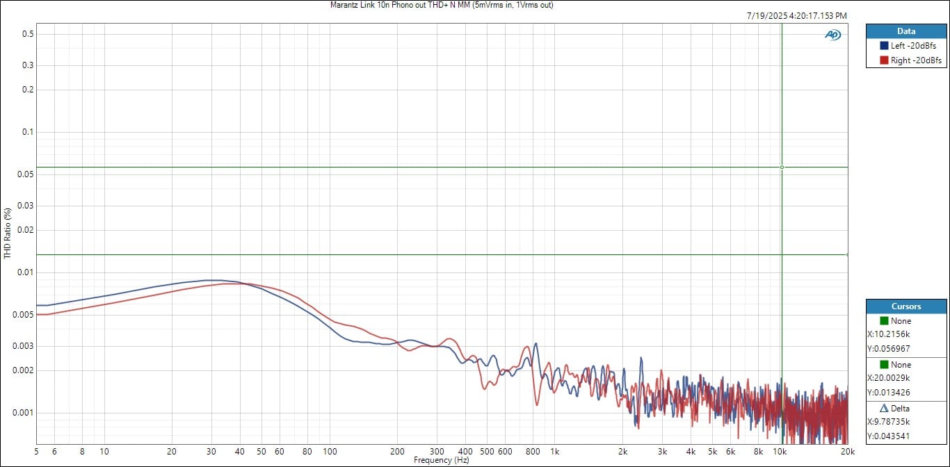 Marantz Link 10n MM Phono THD+N vs Frequency (5mVrms in, 1Vrms out)