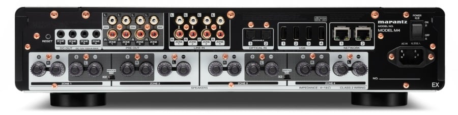 The M4’s industrial design takes cues from the current generation of Marantz Hi-Fi and AVR products, making it more than attractive enough to be left out in the open, if that’s what your setup requires. Of course, its rack-mountable design also makes it perfect for more discreet installations where electronics are kept out of sight. Marantz says the M4 has been “carefully engineered to deliver the extreme robustness, simple control functionality, and flexible configuration that is essential to successful home integration.” Like the M1, the M4 delivers 100 watts per channel into 8-ohm loads. But if you need even more power, the M4 features a Bridge Mode, offering up to 4 x 200W of output, and preamp outputs for use with separate power amps. While it lacks the M1’s eARC input, the M4 does offer two optical inputs, four USB inputs, and four analog inputs on RCA.