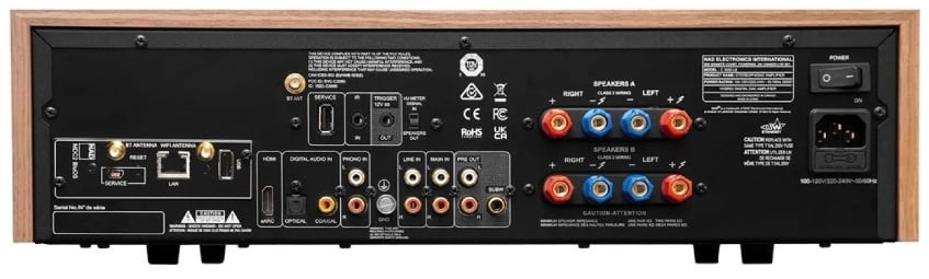 Speaking of source components, the C 3050 can accommodate a turntable, thanks to an “ultra-low-noise” MM phono stage, but the amp can just as easily connect to a smart TV via the HDMI eARC interface. Other inputs include line-level analog, coaxial digital, and optical digital. There is a subwoofer output and a dedicated headphone amplifier in addition to dual sets of loudspeaker terminals and a preamp output. There’s also bi-directional aptX HD bluetooth, so a friend can stream music from a phone without connecting to your Wi-Fi, and the amp can also stream music to your wireless headphones for late-night listening.