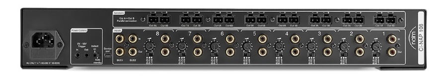 The CI-NAP 108 is a rack-mountable 8-channel power amplifier designed to pair with the CI-Uniti 102 in order to connect multiple speakers in different rooms, or amplify eight separate audio streams via local inputs for each amplified channel.