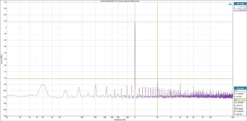 Outlaw Model 5000 FFT Distortion Analysis at Full Rated Power
