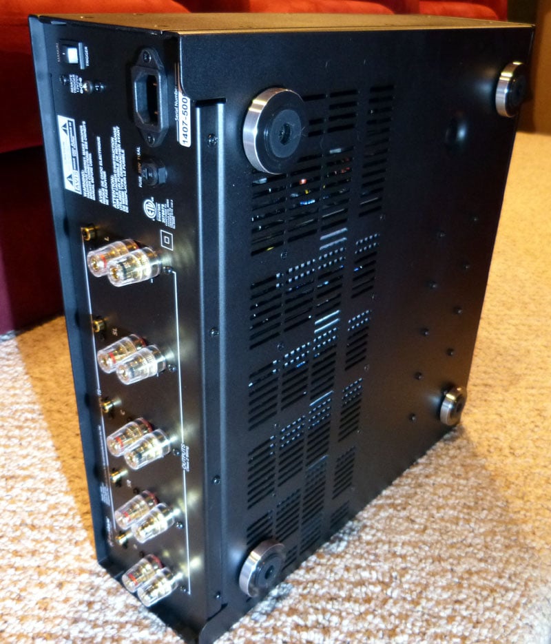 Though the Model 5000 is a bit pedestrian looking, the chassis itself is thicker and sturdier than your typical run of the mill receiver. The blue LED front panel button adds a nice touch of panache to the unit while also serving to let you know when it’s powered up and ready for business. It’s also meant to be an aesthetic match to their Model 975 AV Processor.