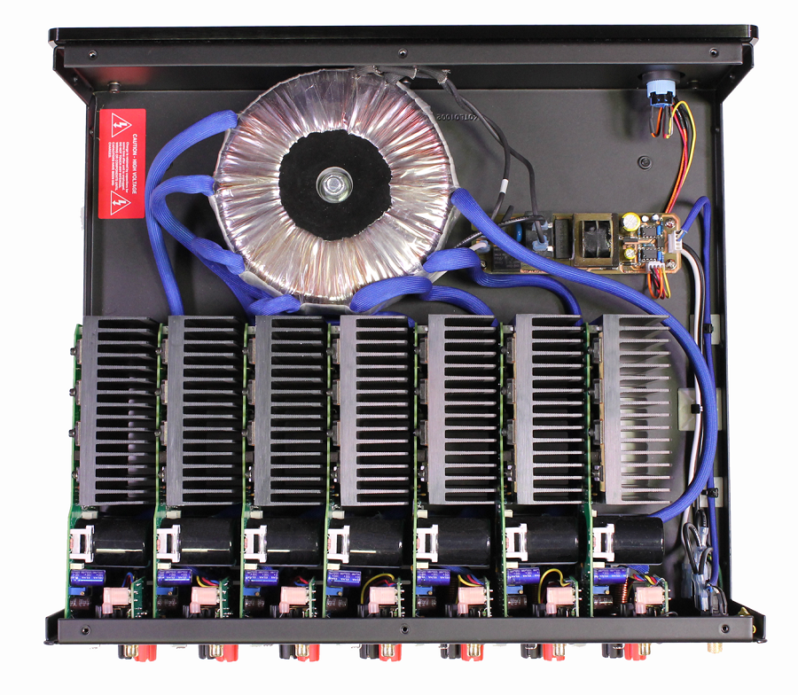 Outlaw Audio also redesigned the amplifier modules with output devices that have higher voltage and current for increased power and reduced distortion. Each of the amplifier modules has three pairs of newly designed output devices which should result in lower distortion and smoother operation.
