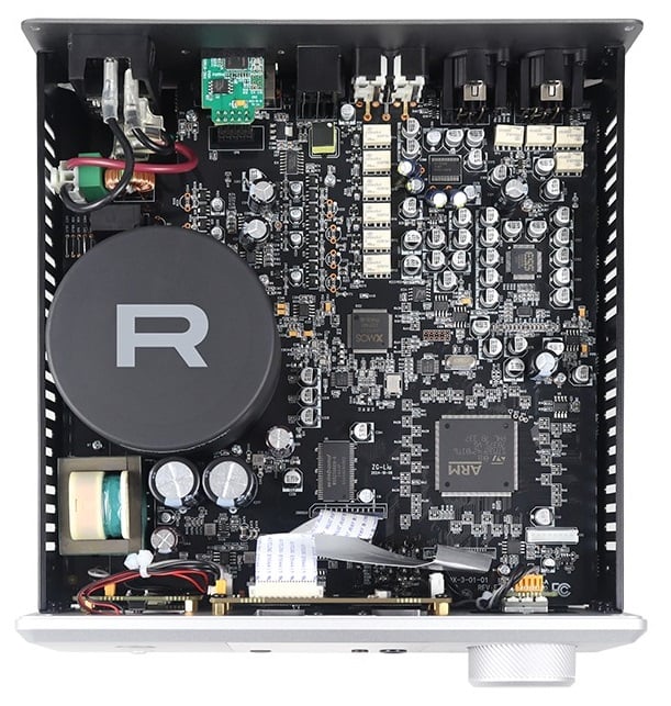 Those who stick with digital sources will be treated to the DX-3’s DAC section built around the highly capable ESS Sabre ES9028PRO 8-channel DAC chip, in which the 32-bit digital processing block cleverly compensates for the THD produced by the analog outputs on the chip. We’ve seen this chip put to use in a number of very fine DACs, including those from Benchmark Media Systems. As always, though, it’s important to remember that the sound of a DAC is not dictated by the chip alone. The unit’s power supply and analog output stage will contribute greatly to the overall sound of the product. To that end, the Rotel DX-3 includes other high-grade components, such as an “ultra-low noise, custom, in-house manufactured, toroidal transformer with high current drivers and high-quality capacitors, (which) combine to ensure music is delivered with the ultimate resolution, rhythm, and timing, …on an immersive sound stage,” according to Rotel.