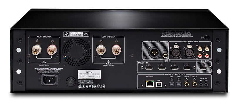 This powerful amplifier boasts 200w per channel at 8 ohms and 400w at 4 ohms with 0.018% THD. You can rest assured that the sound quality is exceptional and your system can really crank the sound especially if you get some audiophile speakers to go with this amp like some Salk Soundscapes or B&W 800 series just to name a few. According to Classe, the 2200i features the same amplifier section of its own Sigma AMP2 and CA-D200. With that said, the 2200i’s class D amp eliminates the necessity for DACs and ADCs which results in shortening of the signal path from the preamp DSP to that of the amplifier section DSP. This allows the input signal to remain digital until the amps’ output filters. More of this is explained on Classe’s website.