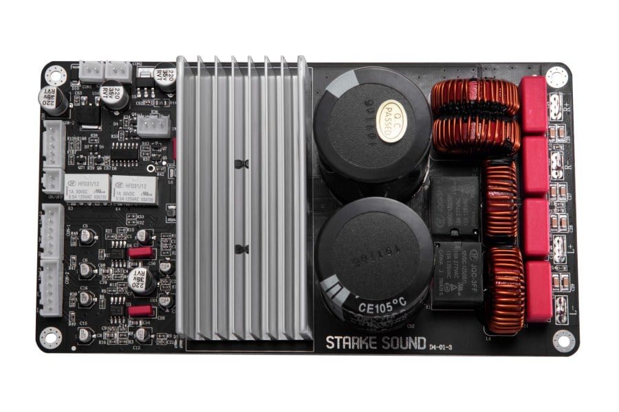 Starke Sound was founded in 2009 by a group of “Southern Californian designers, engineers, and audio enthusiasts,” who set out to “challenge the status quo and create a world-class creative audio company that combines state-of-the-art technology with an elegant, contemporary design aesthetic.” The company started out with a focus on loudspeakers, particularly for multichannel use, and later branched into amplification. In addition to the company’s larger, more expensive Class AB amps, Starke offers one Class D amp in the lineup, for those who gravitate toward smaller chassis and lower prices. The older D7-300 used amp modules from ICEpower, but that model has now been replaced by the 4-channel AD4.320, which has at its heart the newly-developed, Starke-designed NS600 amp module. This innovative design utilizes a linear analog power supply and a high sampling rate of 600 kHz, combining “the high efficiency of class D and the warm sound of class AB amplifiers,” according to Starke Sound. There is certainly a mix of the old and the new at work here, as Starke employs an old-school, heavy-duty power supply with dual 30-amp transformers to power the proprietary Class-D NS600 output modules.
