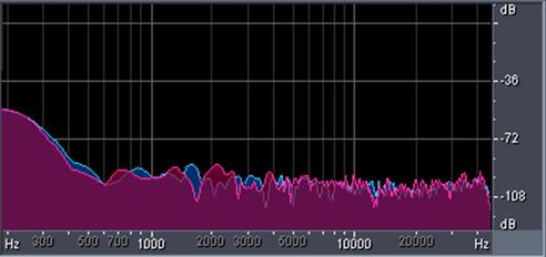 We can see why statistics often "mislead". LP's noise floor is actually quite low over most of the spectrum, ranging from -84dB around 1kHz to -96dB for frequencies above 10kHz . In other words, the LP recording has a lower noise floor than the CD recording for the majority of the spectrum (frequencies above 2kHz ).