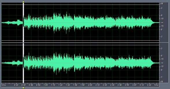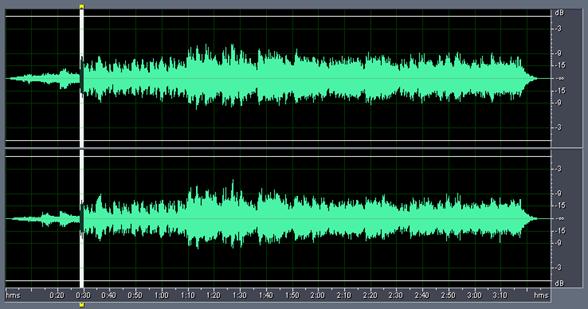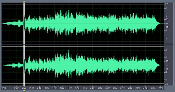 This is the waveform for the digital rip (I'll explain the significance of the highlighted selection around 30 seconds into the track later):