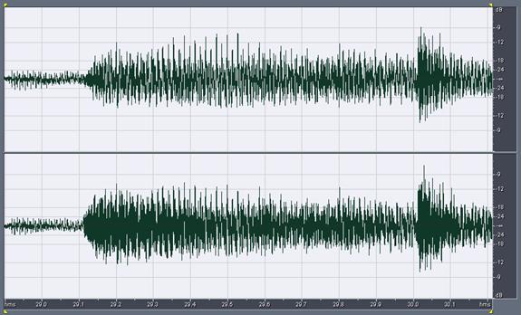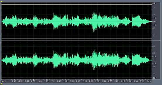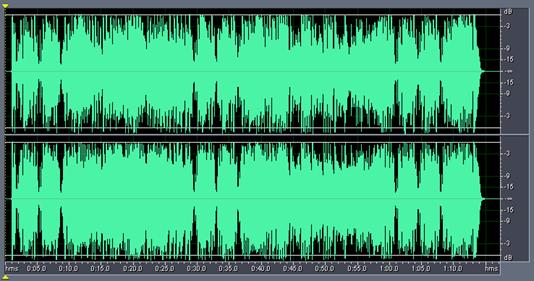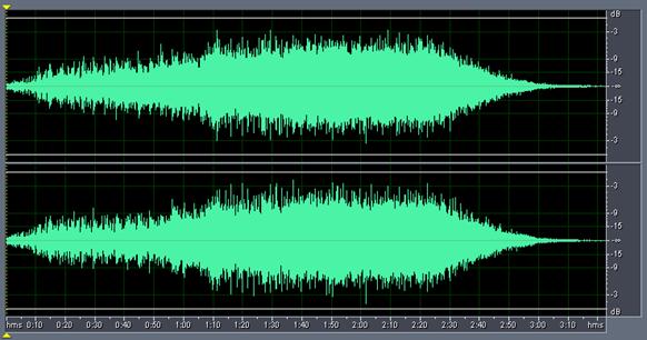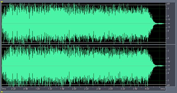 Looking at the digital rip of the CD reveals a typical over-compressed and heavily manipulated pop recording: