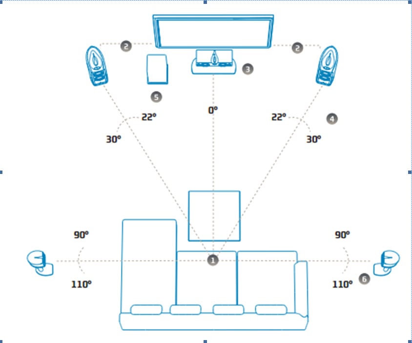 Figure 2: Horizontal angles of basic 5.1 speakers. Courtesy of Dolby.