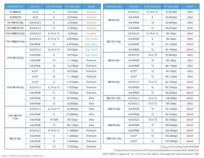 HDMI 2.1 Cable Specs & Bandwidth Requirements Youtube Discussion