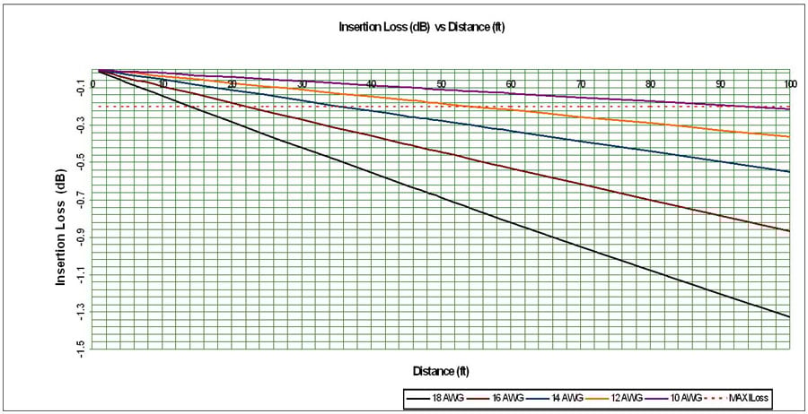 Figure 1. Insertion Loss vs Distance for Various AWG Cables