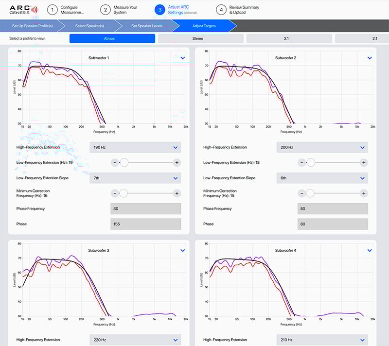 Second there is automated phase adjustment for each subwoofer. Auto phase adjustment is performed after you complete your ARC calibration. Simply put the microphone at the main listening position and let it do its magic.