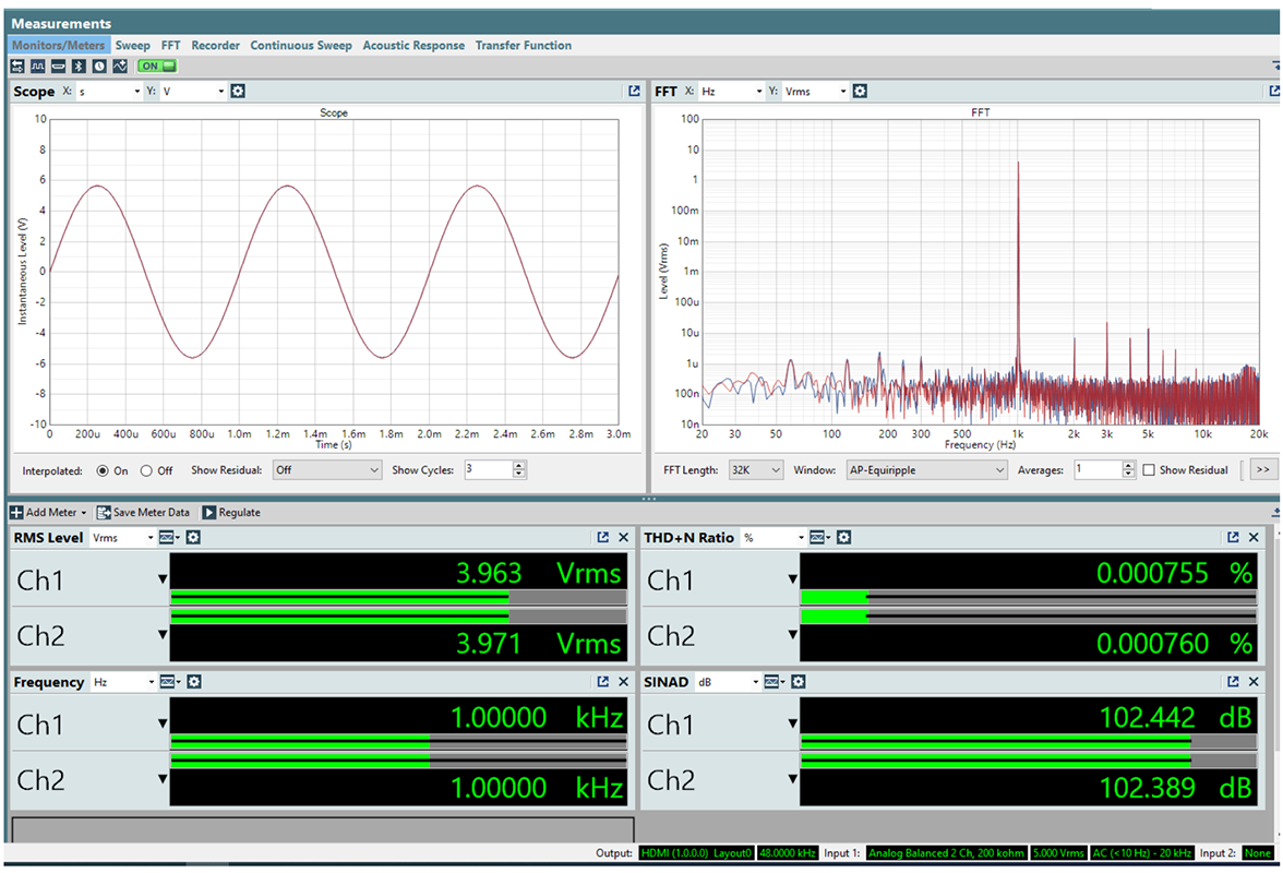 - THD+N (4 Vrms output): 10.7 VRMS, Subwoofer 11 VRMS: -100 dB