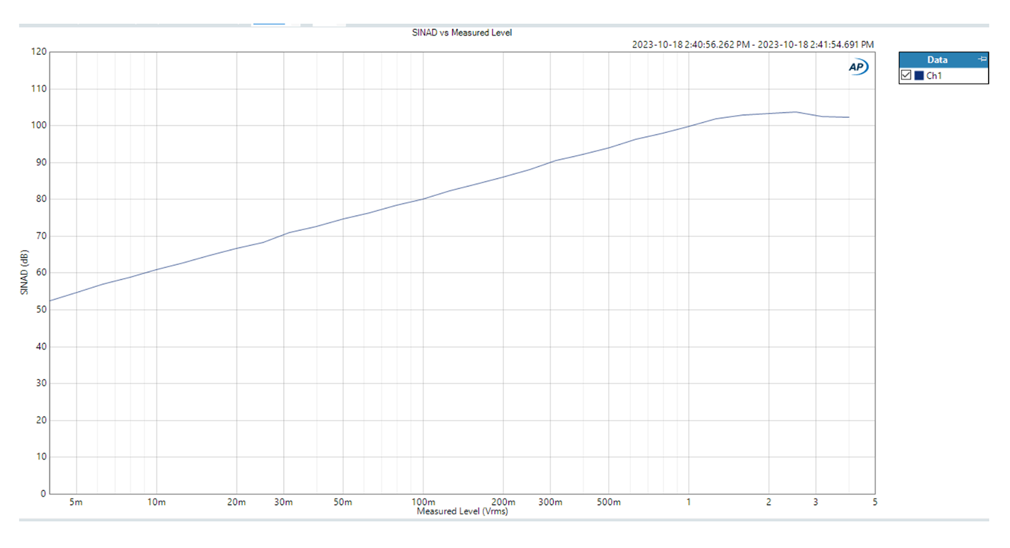 - S/N Ratio (4 Vrms output, IEC-A filter): 115 dB