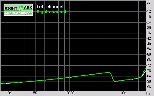 Finally, stereo crosstalk was fairly low and generally hovered around -90dB FS apart from around 50 Hz and above 10 kHz: