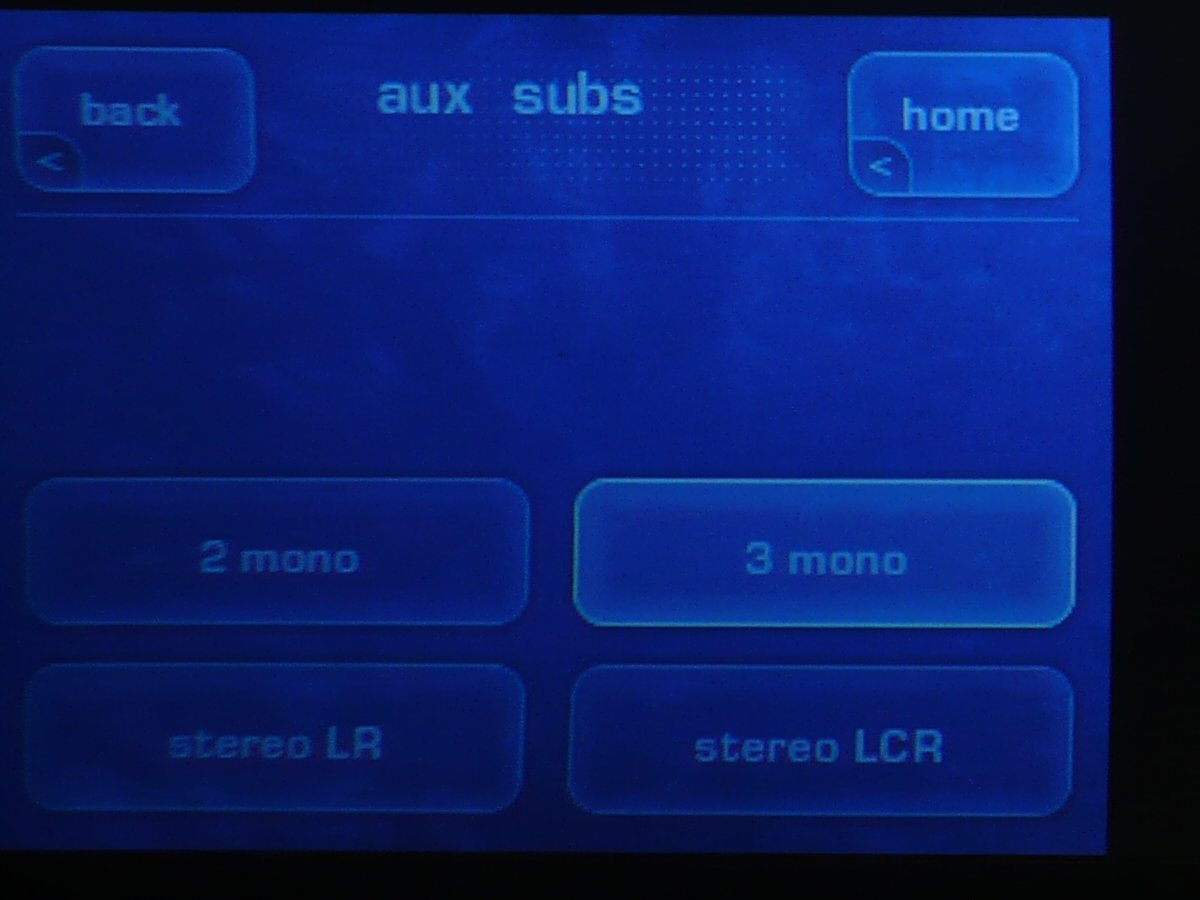 Configuration menu speaker crossover settings Auxiliary channel subwoofer assignments