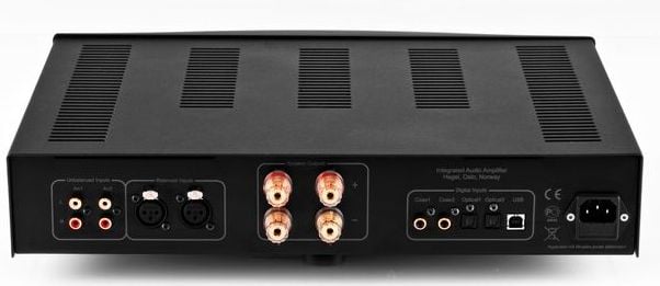 Hegel is a high end company that has made a name for itself with its integrated amps, processors, amplifiers, and DACs. The H80 is the second in a line of five integrated amplifiers. If you already noted the $2000 price tag, you can bet that the top of the line is going to run you a car. The H80 is a brand new product for the company and incorporates some of the technology from their flagship integrated amp as well as from their entry-level processor (not sure why they touted this but they did). First, let's take a look at the back.