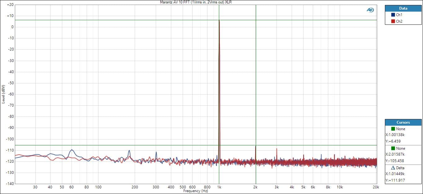 Marantz AV 10 Preamp Out (XLR) FFT Distortion Analysis @ 2Vrms