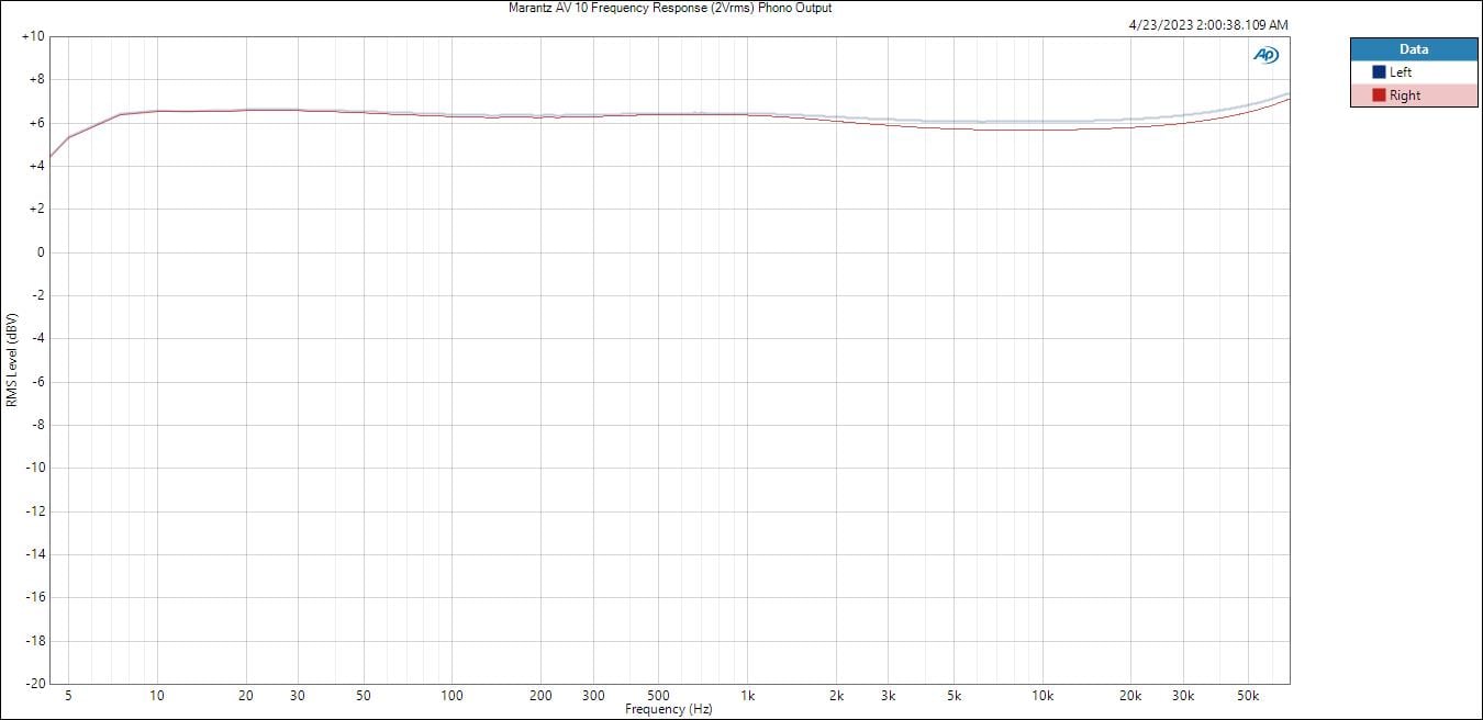Marantz AV 10 Phono Frequency Response (10mVrms in, 2Vrms out)