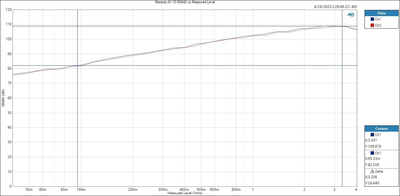 Marantz AV 10 SINAD vs Level (Marantz Test Conditions)