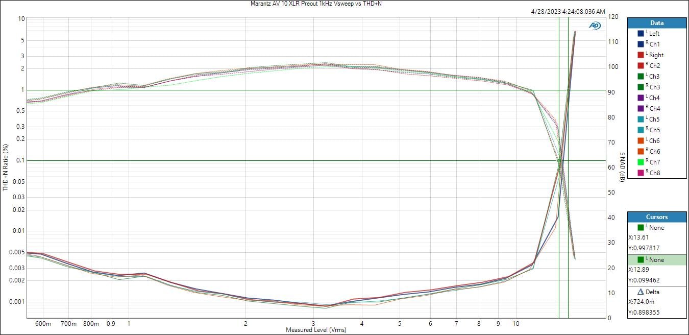 Marantz AV 10 Preamp Output Voltage vs Distortion (XLR)