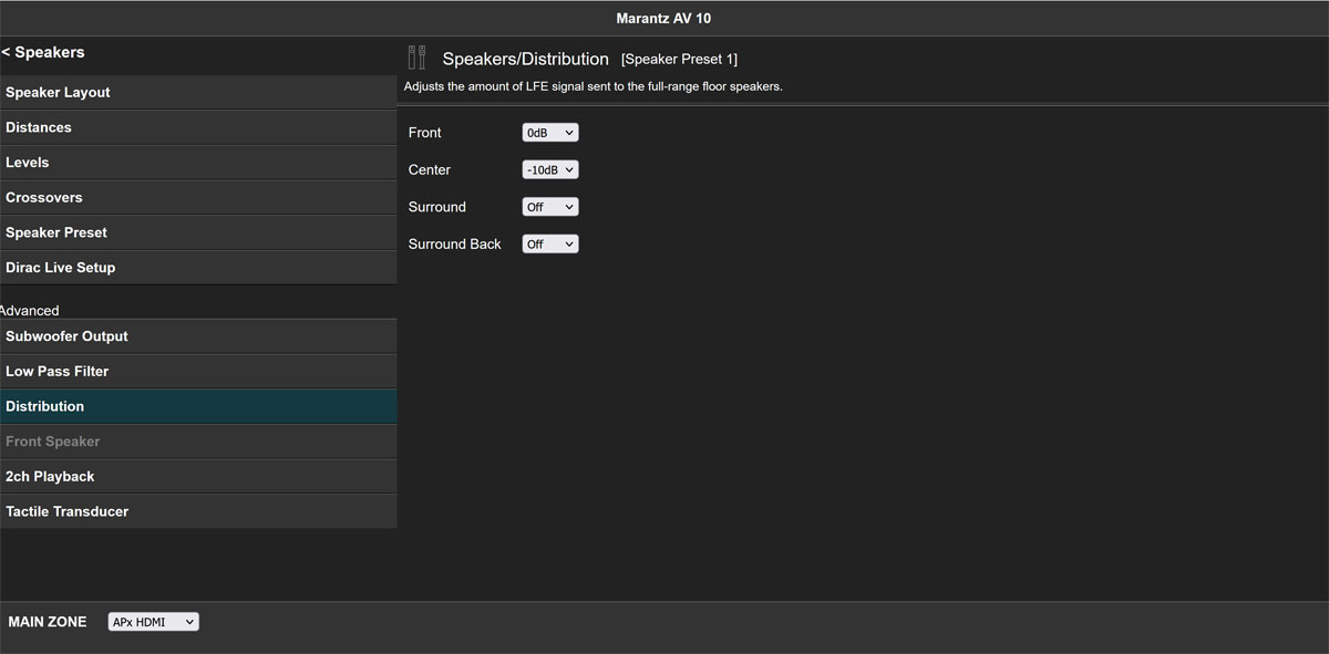 Marantz AV 10 LFE Bass Distribution