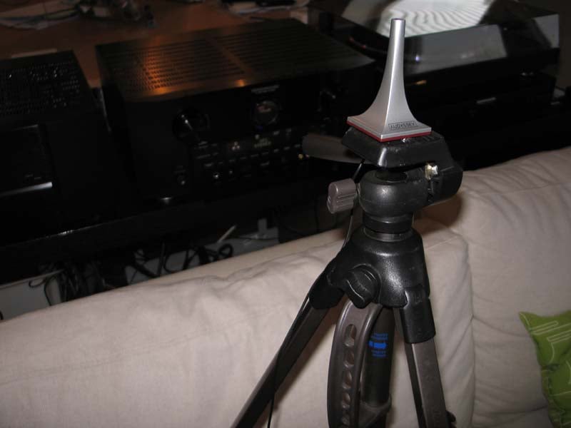 Connect the supplied microphone, mount it on top of a tripod (a cheap camera tripod will do) and place it at ear level at the primary listening spot of your room. It will then measure acoustical room properties (such as reverb time and bass response) and the frequency response of the speakers. It does this by emitting ten loud “pings” per channel. It also checks for correct speaker polarity. Repeat measurements in different locations (6 to 8 points recommended) to give Audyssey a more detailed sonic image of your room. I advice you to measure a second listening position and then continue the other measurements in between the primary and secondary positions. Don’t forget to set your subwoofer’s volume the twelve o’clock position (50%) and the crossover frequency to its highest setting. Skynet, I mean Audyssey, will take control from now on.