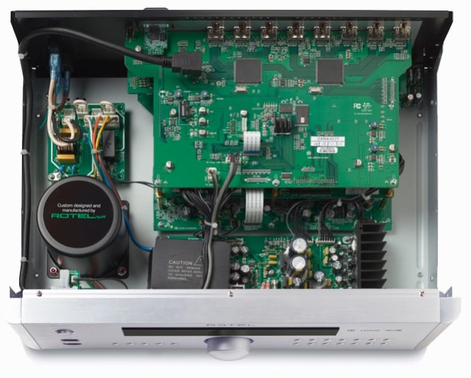 The architecture of the RSP-1576 includes individual audio and video processing circuits with careful attention to signal routing. The sonic circuits were tuned by Rotel’s acoustic engineering team to further ensure the processor accurately reproduces audio from the dynamics of blockbuster movies to the subtle nuances buried deep within an orchestral concerto. The array of source inputs include coaxial (3), optical (3), PC-USB (24/192k), iPod, aptX Bluetooth, XLR Balanced, RCA Analog and Moving Magnet phono stage input for vinyl enthusiasts.