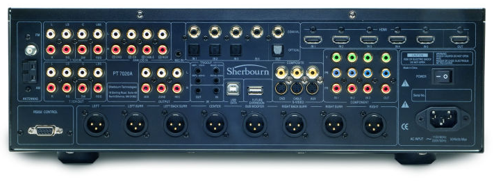 It's been almost 5 years since the debut of the PT-7010A pre-processor from Sherbourn Technologies. Since then, the company has been mostly focused on selling its existing line of multi-channel amplifiers for the custom install market. Now the CE channel manufacturer is getting back into the home theater game with its updated PT-7020A preamplifier/processor. The PT-7020A is a 7-channel model and includes Dolby TrueHD and DTS-MA decoding, 5 HDMI 1.3a inputs and RS-232 control. It is built on the same base platform as the Emotiva UMC-1, but adds updated professional features like XLR outputs and RS-232C control (and of course a completely different chassis with tweaked internals).