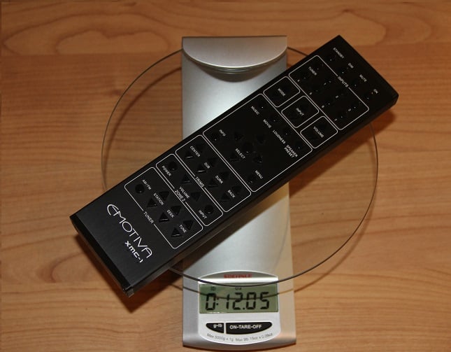 Normally, I would not bother discussing the remote, but this appears to be a statement piece. It is large and long made from black aluminum and steel and it’s a real heavyweight, coming in at ¾ pound. It is neither programmable nor back-lit but has all input buttons except input-8. But it does including discrete On/Standby buttons. All of which are useful to folks like me, who program their remotes with learned codes. A PDF with all remote codes is also available.