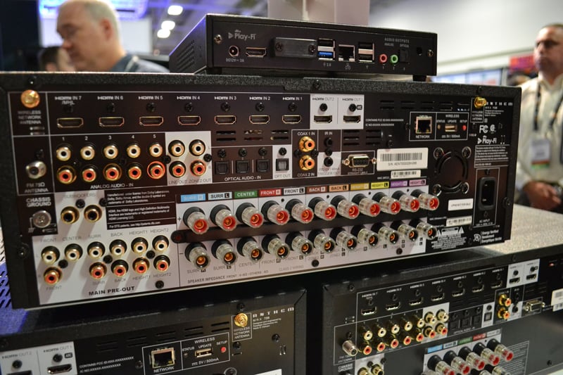 Rear view of Anthem's flagship receiver, the MRX 1120 with 11 channels of on-board amplification