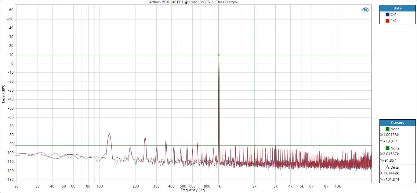 Anthem MRX1140 FFT @ 1 watt, 8 ohms for Class D Amp section
