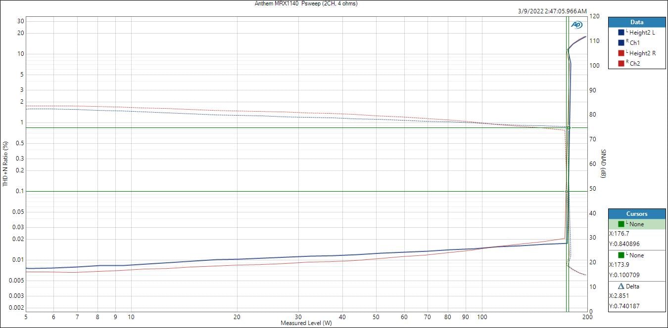 Anthem MRX1140 1kHz (2CH, 4 ohms) Power Test